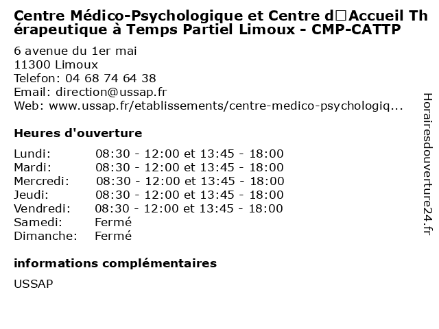 Termes de recherche pour Centre Médico-Psychologique et Centre d’Accueil Thérapeutique à Temps Partiel Limoux - CMP-CATTP:et, limoux, hebergement, centre, temps, santé, social, cmp, etablissement, aide, d’accueil, médico, partiel, psychologique, thérapeutique, cattp |