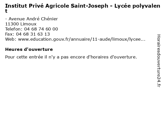 | Appeler Institut Privé Agricole Saint-Joseph - Lycée polyvalent | |