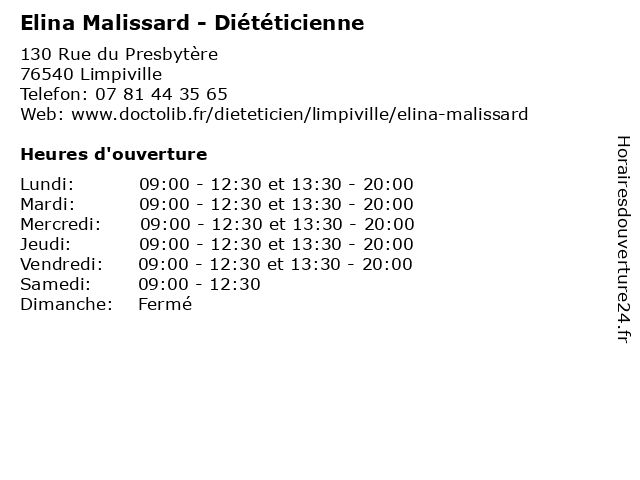 | Mercredi | 09:00-12:30 et 13:30-20:00 |