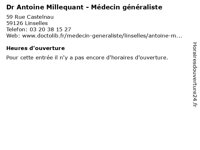 | Appeler Dr Antoine Millequant - Médecin généraliste | |