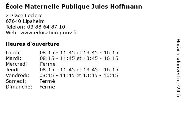 | Mardi | 08:15-11:45 et 13:45-16:15 |