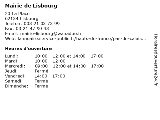 | 1 Mairie de Lisbourg (Distance: 5,72 km) 20 La Place, 62134 Lisbourg administration, assoc public, de, lisbourg, mairie 2 Mairie de Mencas (Distance: 6,17 km) 2 Rue du Marais, 62310 Mencas administration, assoc public, de, mairie, mencas 3 Mairie de Laires (Distance: 7,29 km) . La Place, 62960 Laires administration, assoc public, de, laires, mairie 4 Mairie d'Erin (Distance: 7,64 km) 8 Rue d'Anvin, 62134 Erin administration, assoc public, d'erin, de, erin, mairie 5 Mairie de Fiefs (Distance: 7,80 km) 23 Rue Febvin, 62134 Fiefs administration, assoc public, de, fiefs, mairie 6 Mairie de Coupelle Vieille (Distance: 8,47 km) 10 Rue De La Mairie, 62310 Coupelle Vieille central, commune, coupelle, de, gouvernement, mairie, nra, vieille |