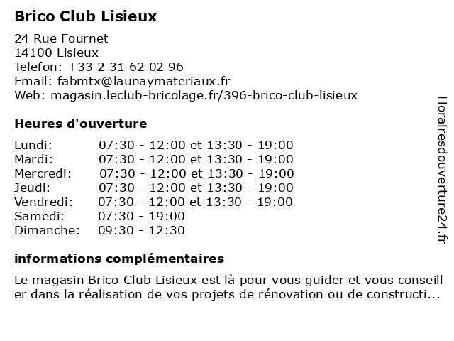 | Lundi | 07:30-12:00 et 13:30-19:00 |