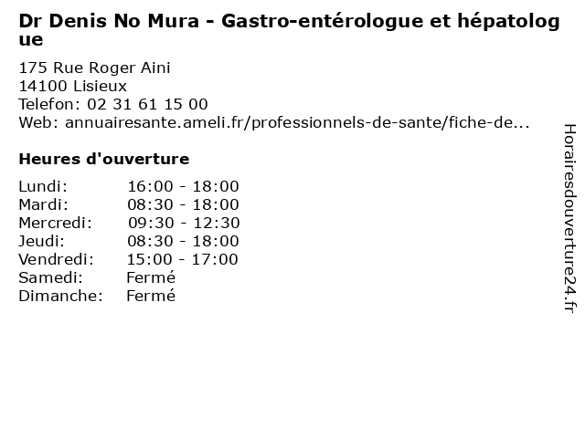 1 Polyclinique de Lisiux - Gastro-entérologie (secrétariat ) (Distance: 0,00 km) 175 Rue Roger Aini, 14100 Lisieux consultation, de, docteur, entérologie, gastro, lisiux, polyclinique, santé, secrétariat 2 Dr Eric Kalinsky - Gastro-entérologue et hépatologue (Distance: 1,92 km) 4 rue Roger Aini, 14117 Lisieux bisson, cancer, cancérologie, centre, dr, entérologie, entérologue, eric, et, gastro, gastroentérologue, hospitalier, hépatologue, kalinsky, lisieux, robert 3 Dr Alolia Aboikoni - Gastro-entérologue et hépatologue (Distance: 1,92 km) 4 rue Roger Aini, 14117 Lisieux aboikoni, alolia, bisson, cancer, cancérologie, centre, dr, entérologie, entérologue, et, gastro, gastroentérologue, hospitalier, hépatologue, lisieux, robert 4 Dr Armand Philippe - Gastro-entérologue (Distance: 1,92 km) 4 rue Roger Aini, 14117 Lisieux ambulatoire, armand, bisson, centre, chirurgien, chiurgie, dr, entérologue, gastro, hospitalier, lisieux, philippe, robert, soins 5 Dr Lakhdar Saadi - Gastro-entérologue (Distance: 1,92 km) 4 rue Roger Aini, 14117 Lisieux ambulatoire, bisson, centre, chirurgien, chiurgie, dr, entérologue, gastro, hospitalier, lakhdar, lisieux, robert, saadi, soins 6 |