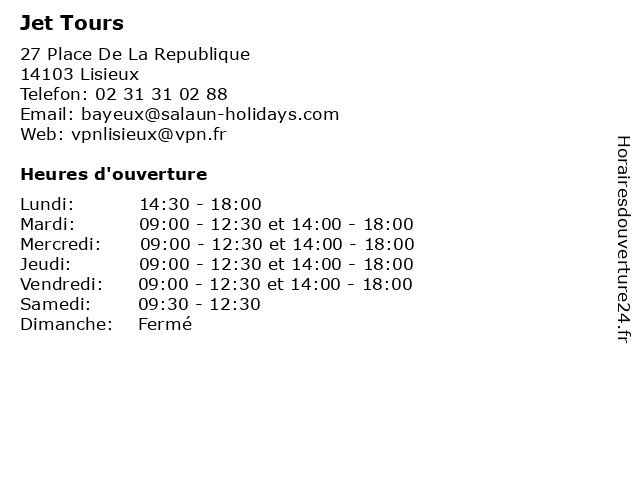 | Mardi | 09:00-12:30 et 14:00-18:00 |