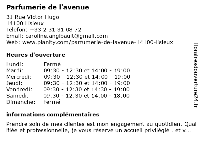 | Mardi | 09:30-12:30 et 14:00-19:00 |