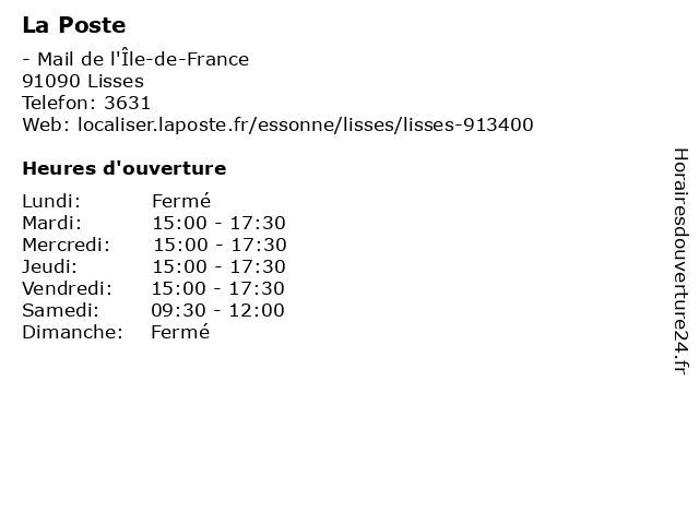 2 La Poste (Distance: 3,51 km) - Rue des Trois Parts, 91070 Bondoufle express chronopost, la, poste, réexpédition internationale 4 La Poste (Distance: 5,44 km) 1 Rue de la Tuilerie, 91250 Saint-Germain-lès-Corbeil express chronopost, la, poste, réexpédition internationale 5 La Poste (Distance: 5,51 km) - Rue De Ris, 91210 Draveil express chronopost, la, poste, réexpédition internationale 6 La Poste (Distance: 6,43 km) - Avenue De Sully, 91210 Draveil express chronopost, la, poste, réexpédition internationale |