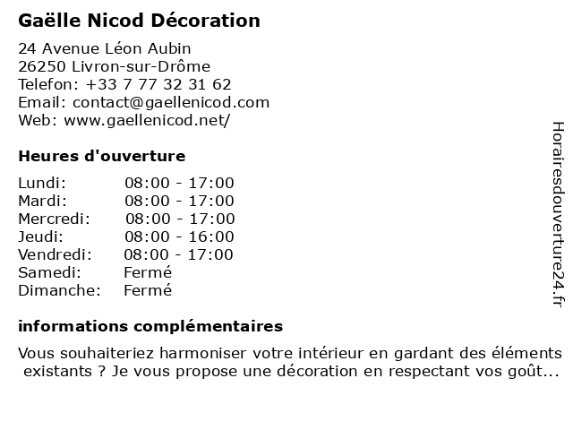 1 Maître Gaëlle Auger - Avocate (Distance: 8,13 km) 52 grande rue, 26800 Etoile sur Rhone auger, avocate, avocats, civils, droits, gaëlle, juridiques, maître 2 Maître Gaëlle Reboul - Avocat (Distance: 17,88 km) 77 rue Faventines, 26000 Valence avocat, gaëlle, justice, lois, maitre, maître, reboul 3 Gaëlle Mahec - Sage-femme (Distance: 18,08 km) 25 Avenue Félix Faure, 26000 Valence du, femme, gaelle, gaëlle, mahec, maternité, périnée, rééducation, sage, uro-gynécologique 4 Mélanie Rousset Décoration (Distance: 18,14 km) 431 avenue de la République, 07500 Guilherand-Granges agencement, aménagement, architecture, décoration, interieur, mélanie, rousset 5 SARL Gaëlle Maurin - Office notarial (Distance: 18,98 km) 72 Route De La Coucourde, 26740 Sauzet assoc, biens, gaëlle, maurin, notaire, notaires, notarial, office, sarl 6 Gaëlle Alberici - Sophrologue (Distance: 25,24 km) 8 Rue André Ducatez, 26200 Montélimar alberici, gaëlle, medecin, sante, sophro, sophrologue |