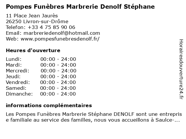 1 Pompes Funèbres Marbrerie Denolf Stéphane (Distance: 19,21 km) 178 Avenue de Romans, 26000 Valence denolf, funèbres, marbrerie, pompes, stéphane 2 Pompes Funèbres et Marbrerie AROLE - PFG LIVRON-SUR-DROME (Distance: 0,44 km) 35 Avenue Léon Aubin, 26250 Livron-sur-Drôme arole, avis de décès, crémation, drome, entretien de sépulture, et, fleurs deuil, formalités après obsèques, funèbres, inhumation, livron, marbrerie, monument funéraire, pfg, pompes, pompes funèbres, prévoyance obsèques, sur 3 Pompes Funèbres et Marbrerie CHAZEL MARTIN - LORIOL-SUR-DROME (Distance: 2,71 km) 87 Avenue de la République, 26270 Loriol-sur-Drôme avis de décès, chazel, crémation, drome, entretien de sépulture, et, fleurs deuil, formalités après obsèques, funèbres, inhumation, loriol, marbrerie, martin, monument funéraire, pompes, pompes funèbres, prévoyance obsèques, sur 4 Pompes Funèbres et Marbrerie CHAZEL MARTIN - PFG LA VOULTE-SUR-RHONE (Distance: 6,10 km) 21 Avenue du Onze Novembre, 07800 La Voulte-sur-Rhône avis de décès, chazel, crémation, entretien de sépulture, et, fleurs deuil, formalités après obsèques, funèbres, inhumation, la, marbrerie, martin, monument funéraire, pfg, pompes, pompes funèbres, prévoyance obsèques, rhone, sur, voulte 5 MARBRERIE DENOLF STEPHANE (Distance: 7,13 km) 1 Quartier Clavelle, 26270 Saulce sur Rhône denolf, marbrerie, stephane 6 Pompes Funèbres et Marbrerie CHAZEL MARTIN - PFG LE POUZIN (Distance: 7,49 km) 6 Avenue Marcel Nicolas, 07250 Le Pouzin avis de décès, chazel, crémation, entretien de sépulture, et, fleurs deuil, formalités après obsèques, funèbres, inhumation, le, marbrerie, martin, monument funéraire, pfg, pompes, pompes funèbres, pouzin, prévoyance obsèques |