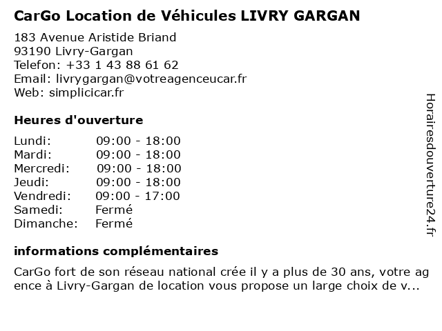 1 CarGo Location de Véhicules LIVRY GARGAN (Distance: 2,63 km) 111 Boulevard Robert Schuman, 93190 Livry-Gargan cargo, de, gargan, livry, location, véhicules 2 Yespark, location de parking au mois - Boulevard Salengro - Parking Livry-Gargan (Distance: 0,30 km) 37/41 Boulevard Roger Salengro, 93190 Livry-Gargan au, boulevard, de, gargan, livry, location, mois, parking, salengro, yespark 3 E.Leclerc Location (Distance: 1,00 km) 12 Allée de la Fosse Maussoin, 93390 Clichy Sous Bois auto, e.leclerc, fourgon, location, voiture 4 E.Leclerc Location (Distance: 1,00 km) 12 Allée de la Fosse Maussoin, 93390 Clichy sous bois agence, de, e.leclerc, location, utilitaire, voiture, véhicule, véhicules 5 E.Leclerc Location (Distance: 1,00 km) 12 Allee de la fosse maussoin, 93390 Clichy Sous Bois agence de location de camions, de, e.leclerc, lieu de covoiturage, location, véhicules 6 Yespark, location de parking au mois - Gare Lycée Henri Sellier - Livry-Gargan (Distance: 1,06 km) 64 Boulevard Maurice Berteaux, 93190 Livry-Gargan au, de, gare, gargan, henri, livry, location, lycée, mois, parking, sellier, yespark |