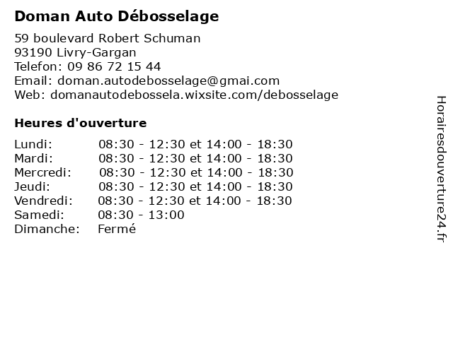 | Lundi | 08:30-12:30 et 14:00-18:30 |