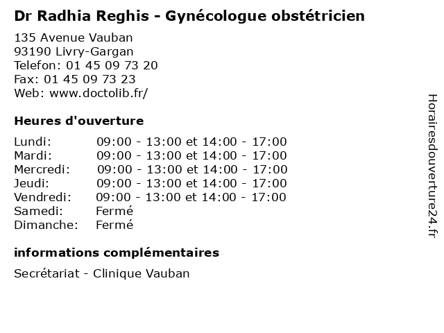 | Lundi | 09:00-13:00 et 14:00-17:00 |