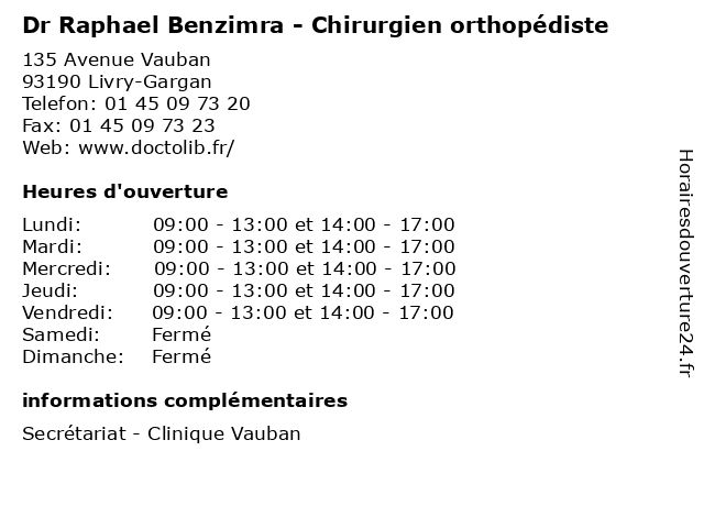 | Lundi | 09:00-13:00 et 14:00-17:00 |