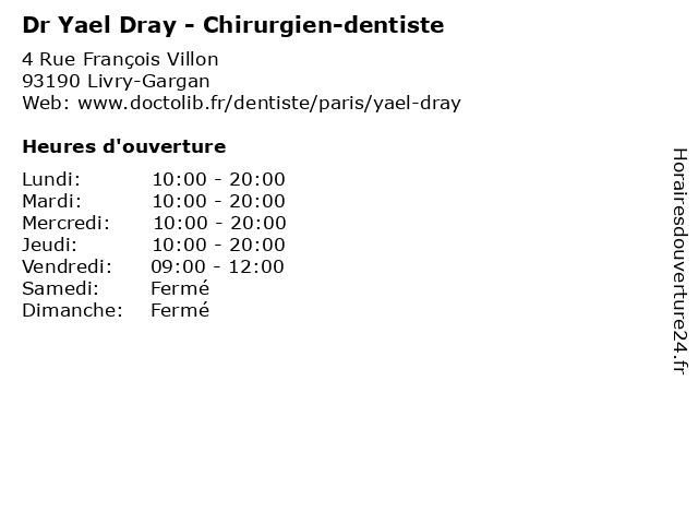 | Lundi | 10:00-20:00 |