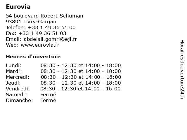 | Lundi | 08:30-12:30 et 14:00-18:00 |