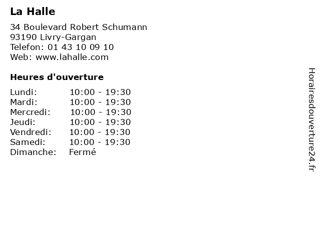 1 La Halle (Distance: 3,16 km) 58 Avenue Victor Hugo, 93320 Les Pavillons-sous-Bois bags, child, clothing, halle, la, lingerie, man, shoes, woman 2 La Halle (Distance: 6,47 km) . Gendarme Castermant, 77500 Chelles cafe, chaussures, enfants, halle, homme, la, mode femme, restaurant, sport 3 La Halle (Distance: 7,11 km) . Gendarme Castermant, 77508 Chelles cafe, chaussures, enfants, halle, la, mode femmes, mode hommes, restaurant, sport 4 La Halle (Distance: 7,21 km) 60 Rue Louis Vannini, 93330 Neuilly-sur-Marne bags, child, clothing, halle, la, lingerie, man, shoes, woman 5 La Halle (Distance: 8,75 km) n/a Paris Nord 2, 95700 Roissy-en-France bags, child, clothing, halle, la, lingerie, man, shoes, woman 6 La Halle (Distance: 8,85 km) n/a Avenir, 93700 Drancy bags, child, clothing, halle, la, lingerie, man, shoes, woman |