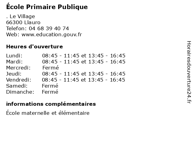 1 École Primaire Publique (Distance: 4,42 km) . Avenue du Vallespir, 66300 Fourques cours, education, primaire, publique, services, école 2 École Primaire Publique (Distance: 6,82 km) . Rue des écoles, 66300 Terrats cours, education, primaire, publique, services, école 3 École Primaire Publique (Distance: 9,25 km) . Rue Général de Gaulle, 66110 Amélie-les-Bains-Palalda cours, education, primaire, publique, services, école 4 École Primaire Publique (Distance: 10,70 km) . Avenue de la Mairie, 66300 Saint-Jean-Lasseille cours, education, primaire, publique, services, école 5 École Primaire Publique (Distance: 13,01 km) . Cami Del Montou, 66130 Corbère-les-Cabanes cours, education, primaire, publique, services, école 6 École Primaire Publique (Distance: 13,34 km) 26 Avenue Jean Moulin, 66620 Brouilla cours, education, primaire, publique, services, école |