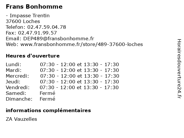 | Lundi | 07:30-12:00 et 13:30-17:30 |
