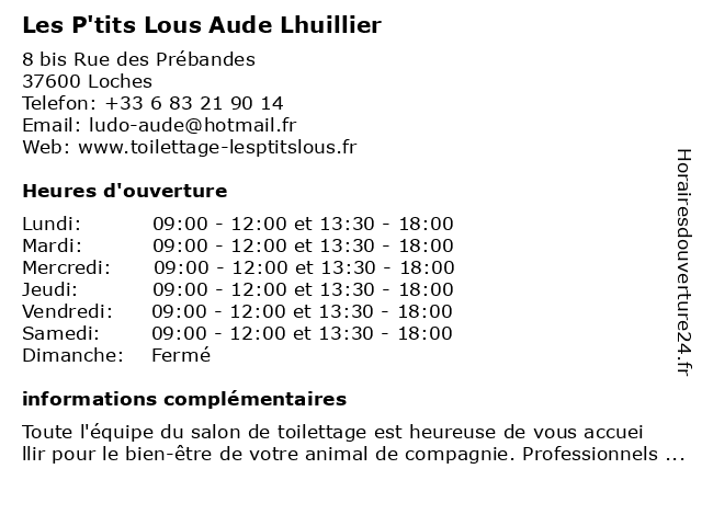 | Samedi | 09:00-12:00 et 13:30-18:00 |