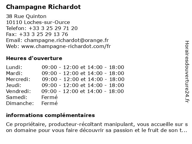 2 Champagne Veuve Virey (Distance: 2,02 km) 38 Grande Rue, 10110 Landreville brut, champagne, doux, magnum, vente, veuve, vins, virey 3 Champagne Charles Jolly (Distance: 2,27 km) 4 Rue de ville sur Arce, 10110 Landreville brut, champagne, charles, doux, jolly, magnum, vente, vins 4 Champagne Royer Père & Fils (Distance: 2,74 km) 120 Grande Rue, 10110 Landreville brut, champagne, doux, fils, magnum, père, royer, vente, vins 5 Prieuré de Viverie & Champagne Robert Grandpierre (Distance: 3,32 km) - Allée du Prieuré, 10110 Viviers-sur-Artaut brut, champagne, de, doux, grandpierre, magnum, prieuré, robert, vente, vins, viverie 6 Champagne Alain Réaut (Distance: 6,49 km) 12 Chemin de Derrière les Murs, 10250 Courteron alain, bio, champagne, champagnes, entreprise, réaut, société, vente, vignoble |
