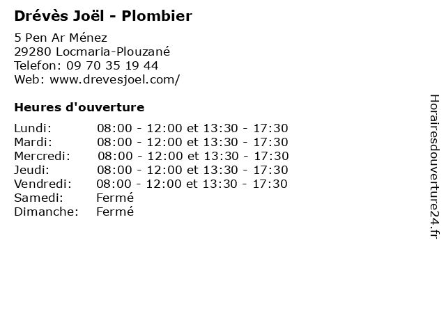| Lundi | 08:00-12:00 et 13:30-17:30 |