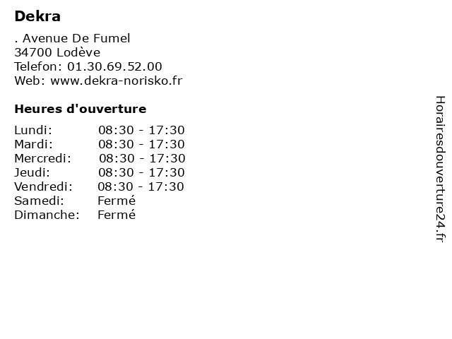 2 Dekra (Distance: 14,39 km) . Route De Montpellier, 34800 Clermont I'Hérault automobile, dekra, services, technique 3 Centre contrôle technique DEKRA (Distance: 0,87 km) 91 Rue des Anciens, 34700 Lodève 4x4, camping car, centre, collection, contrôle, dekra, diesel, electrique, essence, gazole, suv, technique, utilitaire, voiture 4 Centre contrôle technique DEKRA (Distance: 14,33 km) Rue du Languedoc, 34800 Clermont-l'Hérault 4x4, camping car, centre, collection, contrôle, dekra, diesel, electrique, essence, gazole, suv, technique, utilitaire, voiture 5 Centre contrôle technique DEKRA (Distance: 14,33 km) Rue du Languedoc, 34800 Clermont-l'Hérault 4x4, camping car, centre, collection, contrôle, dekra, diesel, electrique, essence, gazole, suv, technique, utilitaire, voiture 6 Centre d’examen du code de la route - DEKRA (Distance: 14,61 km) 15 Rue Victor Hugo, 34800 CLERMONT-L'HERAULT centre, code, cours, de, dekra, du, d’examen, examens, formation, la, permis, route |