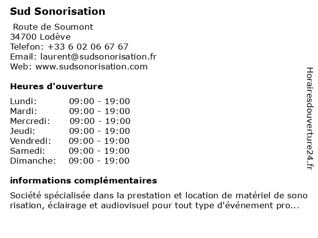 1 Restaurant Saveurs au Grand Sud (Distance: 0,69 km) 1 Place de la République, 34700 Lodeve au, bar, bistro, bistrot, brasserie, café, grand, pub, restaurant, restauration, resto, saveurs, sud 2 Ondupack - Cartonnerie Sud de France (Distance: 1,94 km) - Parc dʼActivités Michel Chevalier, 34700 Le Bosc caisses américaines, cartonnerie, coffrets bouteilles, de, emballages, france, ondupack, produits découpés, sud 3 Sud Minute Les Nouveaux Cordonniers (Distance: 5,75 km) Parc Activités Méridienne, 34700 Le Bosc cordonniers, les, minute, nouveaux, sud 4 Sud Jardins (Distance: 14,06 km) n/a Chemin du Moulin de Cot, 34800 Clermont-l'Hérault entretien, jardinier, jardins, paysagiste, sud 5 Euro Sud Habitat (Distance: 14,09 km) 315 Chemin Pioch Embannes, 34800 Clermont-l'Hérault euro, habitat, sud 6 Association Concordia Sud-Est (Distance: 14,41 km) - Rue Nafournes, 34800 Clermont-l'Hérault association, bénévoles, clermont-l'hérault, concordia, est, projets, solidaires, sud, sud-est |