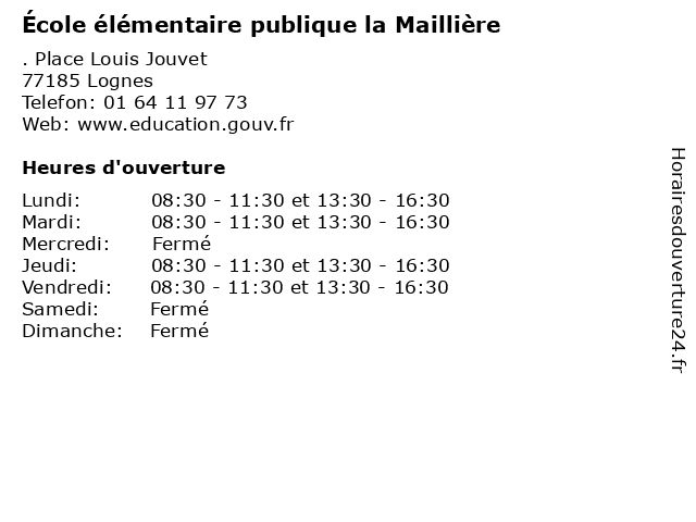 | Mardi | 08:30-11:30 et 13:30-16:30 |