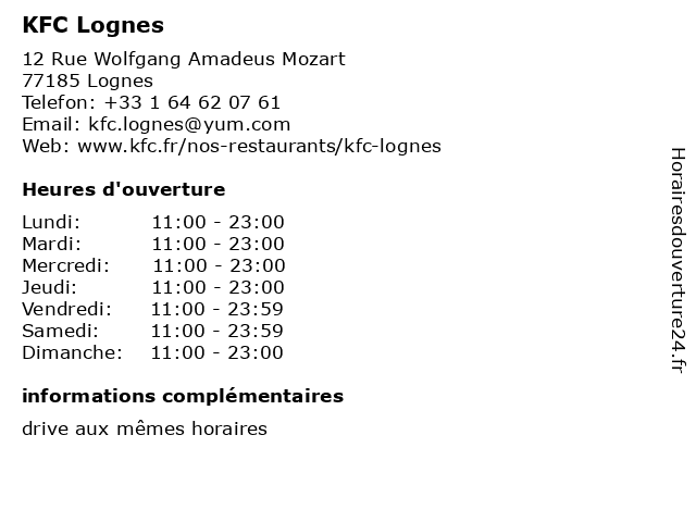 2 KFC Drive (Distance: 0,01 km) 12 Rue Mozart, 77185 Lognes boissons, burger, drive, fastfood, frites, kfc, restaurant 4 KFC Villiers-sur-Marne (Distance: 6,91 km) 2 Boulevard Jean Monnet, 94350 Villiers-sur-Marne kfc, marne, sur, villiers 5 Kfc France Sas (Distance: 7,20 km) Zac De La Port De Villiers, 94354 Villiers Sur Marne Cedex france, kfc, restaurants 6 |