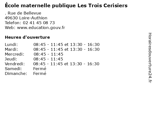 | Mardi | 08:45-11:45 et 13:30-16:30 |