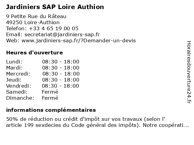 | Samedi | Fermé |