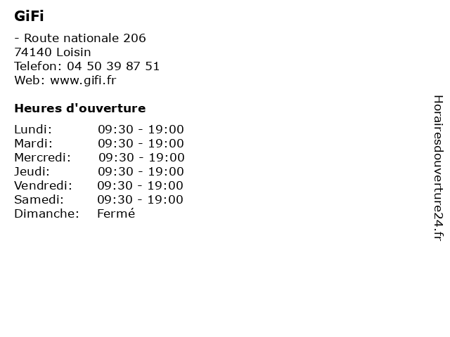 1 Gifi (Distance: 12,69 km) 13 Avenue Pré Robert Nord, 74200 Anthy sur Léman ameublement, decoration, electromenager, gifi, maison 2 GiFi (Distance: 13,09 km) - Rue René Cassin, 74240 Gaillard bureau, cuisine, décoration, gifi, jardin & plein air, salle à manger, salon, stockage - salle 3 GiFi (Distance: 29,59 km) 8 Rue des Chasseurs, 74950 Scionzier bureau, cuisine, décoration, gifi, jardin & plein air, salle à manger, salon, stockage - salle 4 GiFi (Distance: 38,47 km) 38 Route de Lyon, 39200 Saint Claude cuisines, decoration, entretien, gifi, jardin, linge de maison, mobillier 5 GiFi (Distance: 41,55 km) - la Mandallaz, 74330 Epagny cuisines, decoration, entretien, gifi, jardin, linge de maison, mobillier 6 GiFi (Distance: 42,04 km) - Avenue du Maréchal de Lattre de Tassigny, 01200 Châtillon-en-Michaille ameublement, cadeaux, décoration, gifi, maison |