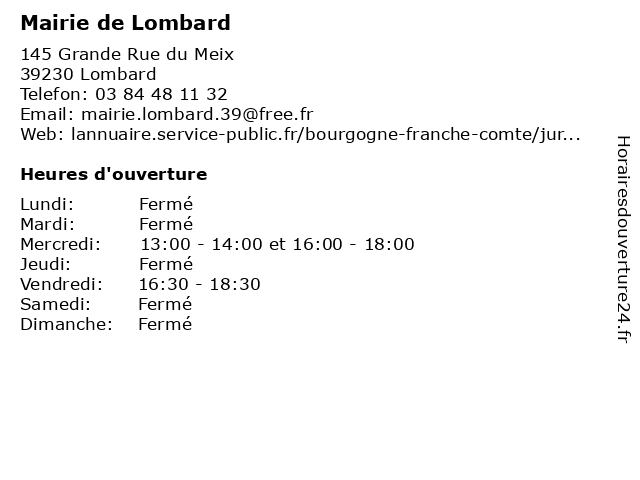 Termes de recherche pour Mairie de Lombard:de, administration, mairie, lombard, service public |