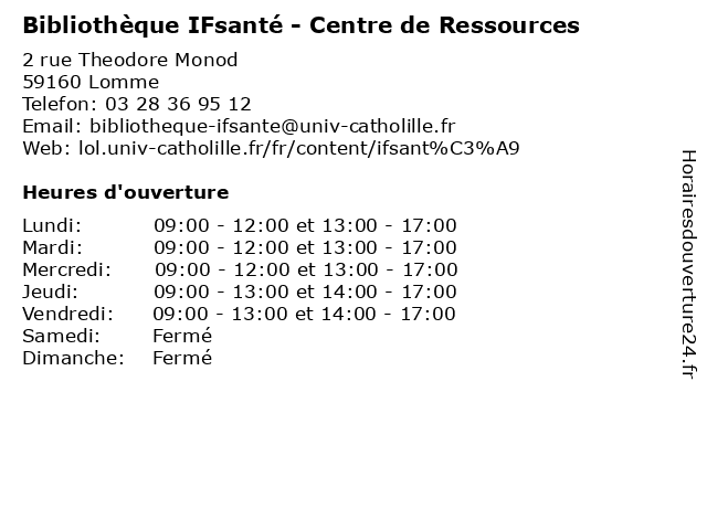 | Lundi | 09:00-12:00 et 13:00-17:00 |