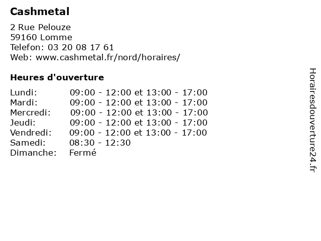 | Mercredi | 09:00-12:00 et 13:00-17:00 |