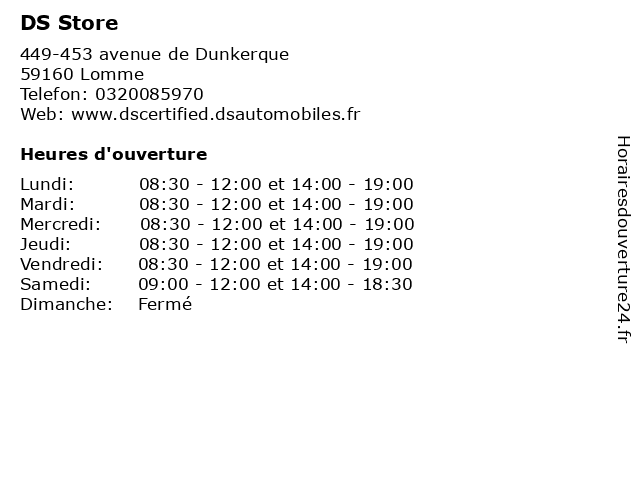 | Samedi | 09:00-12:00 et 14:00-18:30 |