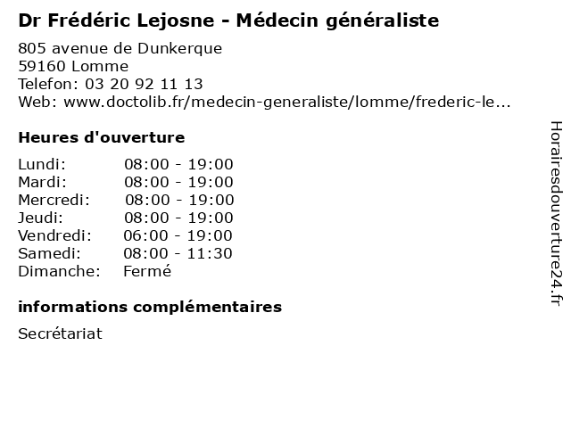 | Lundi | 08:00-19:00 |