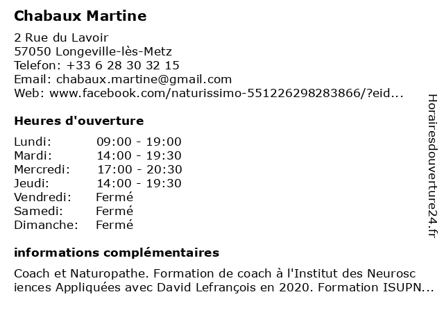 | Samedi | Fermé |