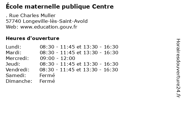 | Mardi | 08:30-11:45 et 13:30-16:30 |