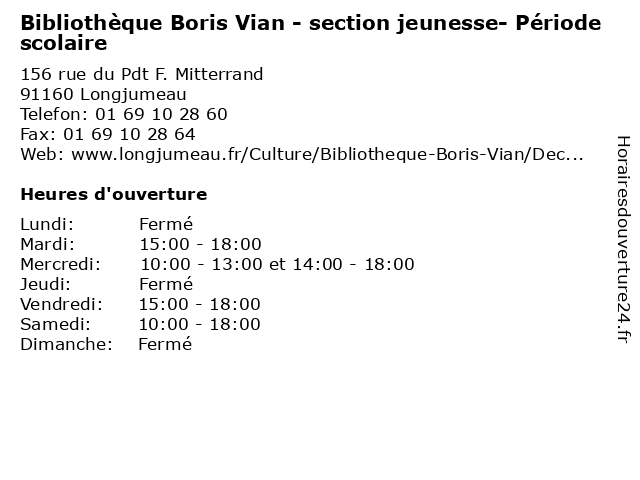| Mercredi | 10:00-13:00 et 14:00-18:00 |