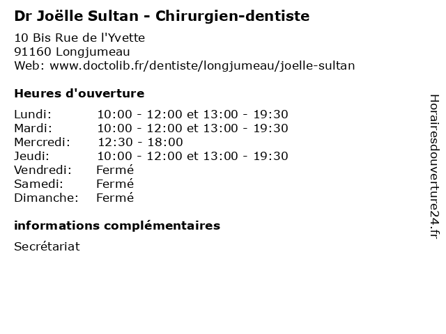 | Mardi | 10:00-12:00 et 13:00-19:30 |