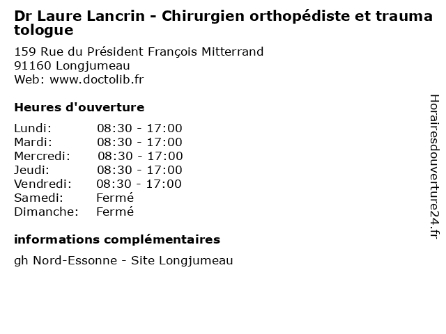 | Lundi | 08:30-17:00 |