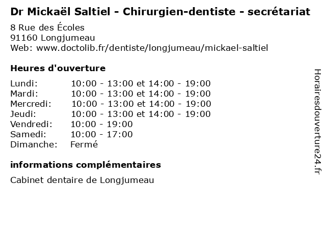 Lundi | 10:00-13:00 et 14:00-19:00 |