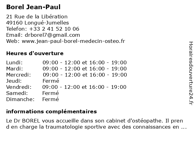 | Samedi | Fermé |