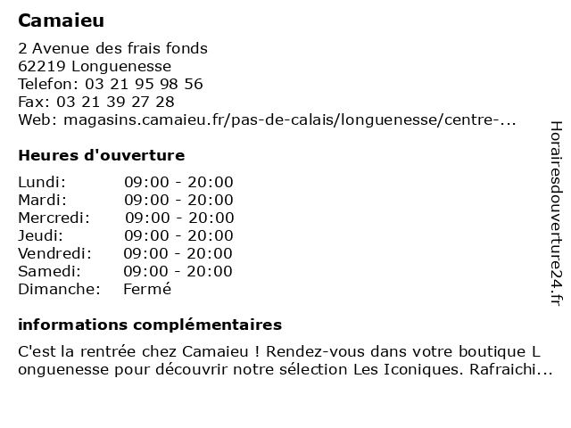1 Jules Longuenesse (Distance: 0,01 km) Centre Co Rives De L'aa, 62219 LONGUENESSE jules, longuenesse, magasin de smokings, magasin de t-shirts, magasin d’accessoires de mode, mode 2 Brice Longuenesse (Distance: 0,01 km) Centre Commercial Auchan, 62219 LONGUENESSE brice, longuenesse, magasin de smokings, magasin de t-shirts, magasin d’accessoires de mode, mode 3 Z Generation (Distance: 2,05 km) 1, rue de Dunkerque, 62500 Saint Omer accessories, children 0-14 years, clothing, coats, dresses, generation, hoodies, jackets, jeans pants, pajamas, shirts, shoes, skirts, sweatshirts, t-shirts 4 Camaïeu (Distance: 2,05 km) 32 rue de Dunkerque, 62500 Saint Omer boutiques, camaïeu, clothings, pants, shirts 5 Camaïeu (Distance: 4,40 km) - Route d'Arques, 62219 Longuenesse boutiques, camaïeu, clothings, pants, shirts 6 Camaieu (Distance: 29,96 km) Route départementale 601, 59760 Grande-Synthe camaieu, magasin de chaussures, magasin de t-shirts, magasin d’accessoires de mode, maroquinerie, mode |