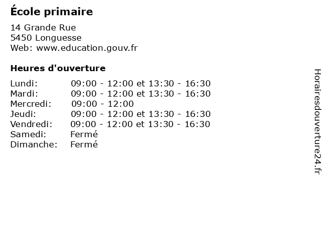 Lundi | 09:00-12:00 et 13:30-16:30 |