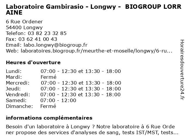 Termes de recherche pour Laboratoire Gambirasio - Longwy - BIOGROUP LORRAINE:longwy, laboratoire, lorraine, gambirasio, biogroup, dépistages, laboratoire de diagnostic |