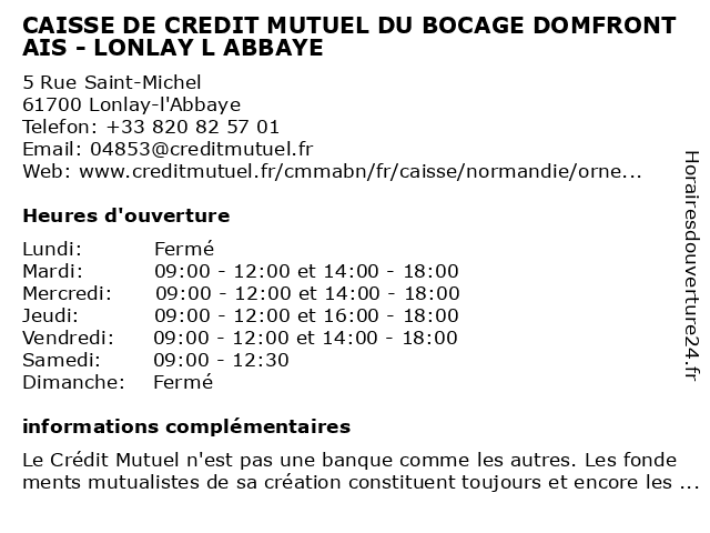 Termes de recherche pour CAISSE DE CREDIT MUTUEL DU BOCAGE DOMFRONTAIS - LONLAY L ABBAYE:du, de, bocage, crédit, mutuel, caisse, abbaye, domfrontais, lonlay |