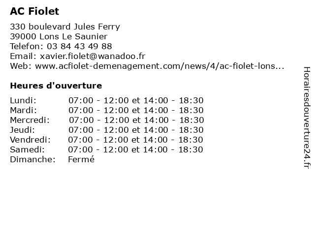 | Samedi | 07:00-12:00 et 14:00-18:30 |