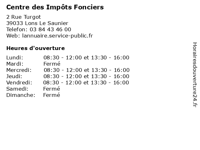 Termes de recherche pour Centre des Impôts Fonciers:le, de, lons, des, administration, services, centre, saunier, impôts, services publics, assoc, foncier, fonciers |